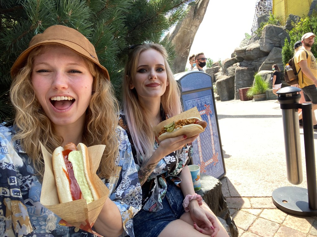 Now was time for a quick journey to the loo and then lunch. A lot of food places were closed and being prepared as Christine is, she printed herself a list out with all the vegan possibilities. She always wanted to try a vegan HotDog so it was perfect we found ourselves next to Moby Dick, which served the only vegan HotDogs in the whole park. To say the least it was warm and we were happy to have found a little wall in the shade to have our lunch. I personally enjoyed my HotDog and if I understood correctly Christine found hers pretty alright!