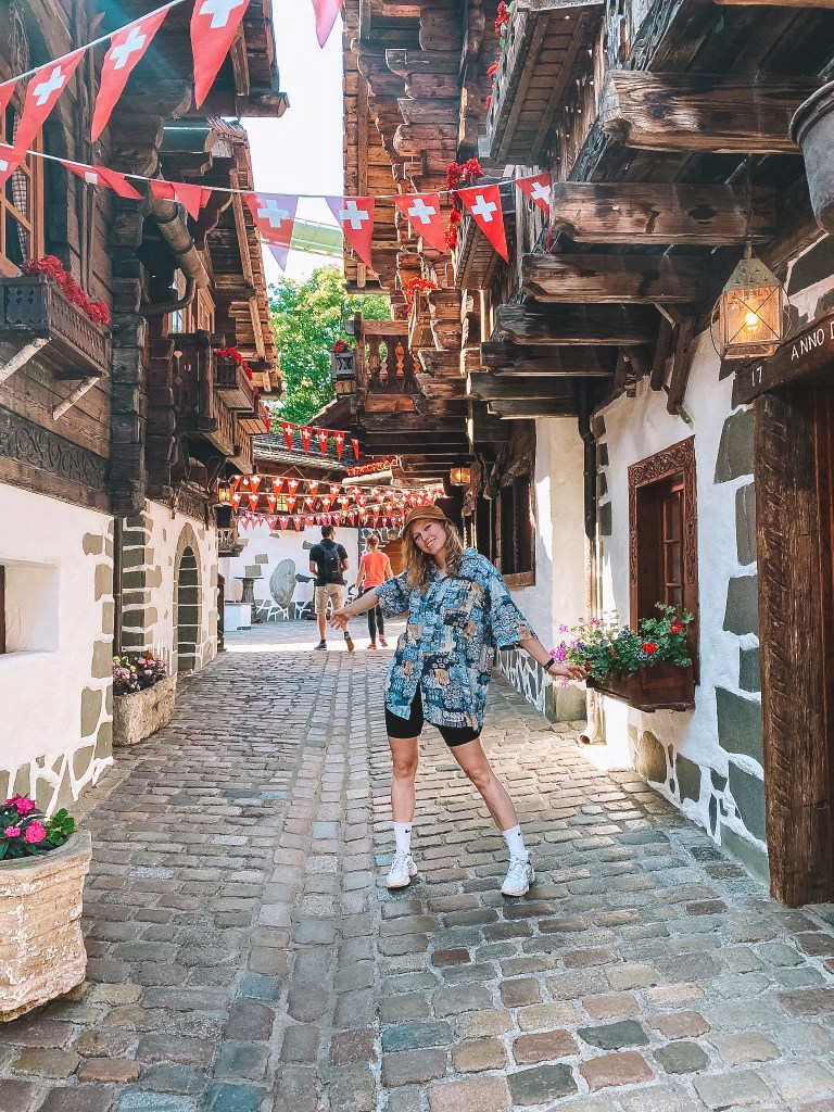 Then we walked through Switzerland, which I personally think is so cute! I also usually tend to have a little Raclette there, but when we were there, the food part was closed off. We did decide to have a little break in the shade and used the ice cold fountain to cool us down. (It is no drinking water, but super refreshing.)